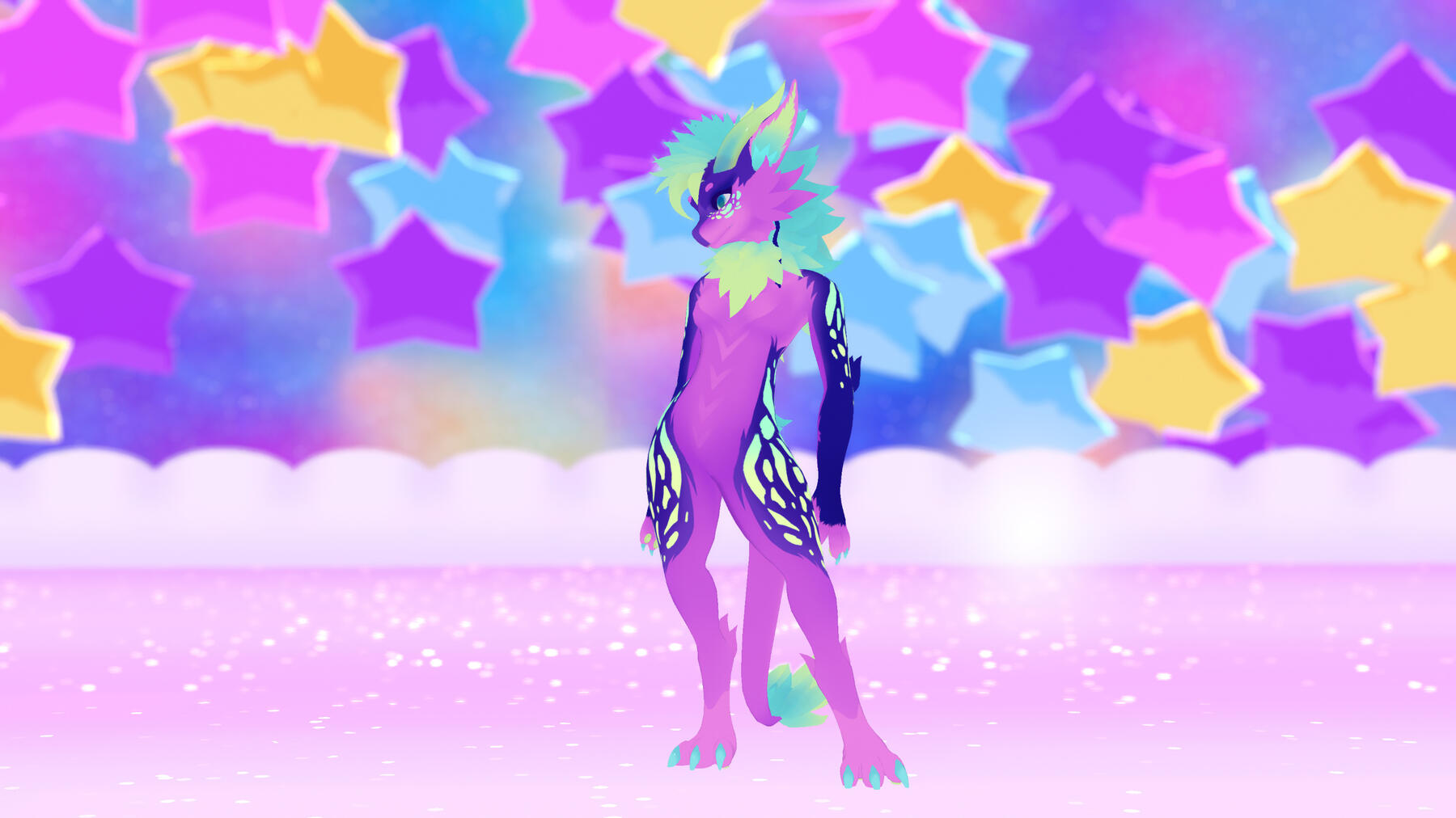 features: customized base (edited snout, tail, fingers, etc.), added face tracking, custom Luma Glow-enabled texture, new clothing textures